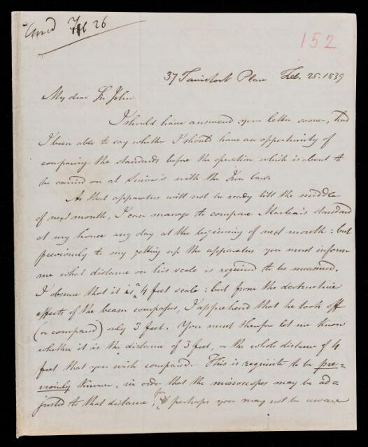 Francis Baily, Francis Baily, Letter, from Francis Baily to Sir John Herschel, dated at 37 Tavistock Place, 25 February 1839, HS/3/152, The Royal Society Archives, London, https://makingscience.royalsociety.org/items/hs_3_152/letter-from-francis-baily-to-sir-john-herschel-dated-at-37-tavistock-place, accessed on 15 November 2025