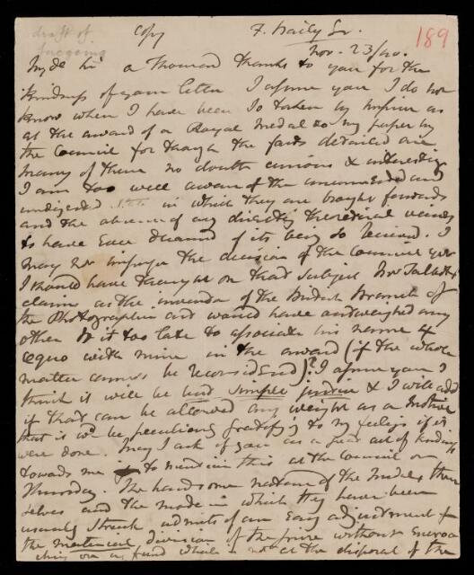 John Frederick William Herschel, Sir; John Frederick William Herschel, Copy letter, from Sir John Herschel to Francis Baily, 23 November 1840, HS/3/189, The Royal Society Archives, London, https://makingscience.royalsociety.org/items/hs_3_189/copy-letter-from-sir-john-herschel-to-francis-baily, accessed on 12 November 2025