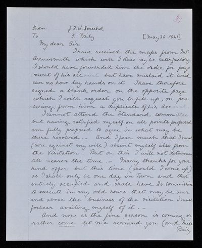 John Frederick William Herschel, Sir; John Frederick William Herschel, Letter, from Sir John Herschel to Francis Baily, 26 May 1841, HS/3/207, The Royal Society Archives, London, https://makingscience.royalsociety.org/items/hs_3_207/letter-from-sir-john-herschel-to-francis-baily, accessed on 15 November 2025