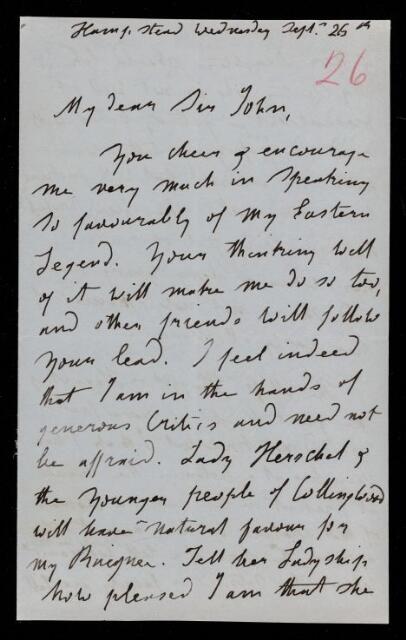 Joanna Baillie, Letter, from Joanna Baillie to Sir John Herschel, dated at Hampstead, 26 September 1850, HS/3/26, The Royal Society Archives, London, https://makingscience.royalsociety.org/items/hs_3_26/letter-from-joanna-baillie-to-sir-john-herschel-dated-at-hampstead, accessed on 16 November 2025