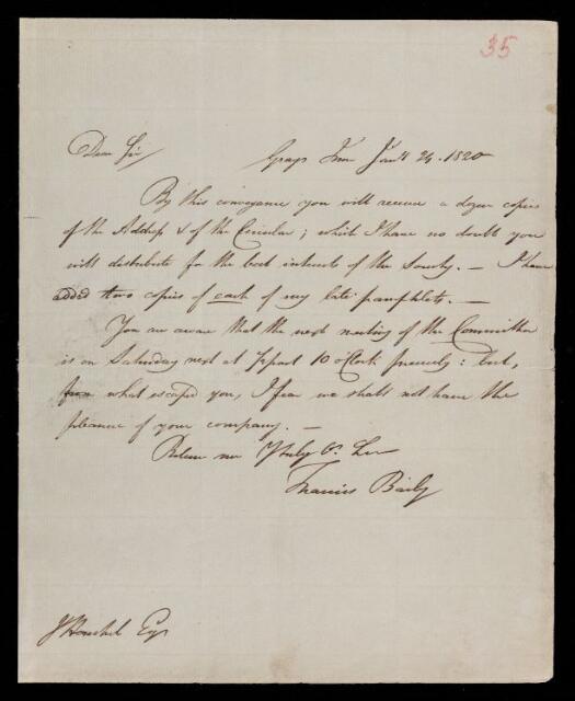 Francis Baily, Francis Baily, Letter, from Francis Baily to Sir John Herschel, dated at Gray's Inn, 24 January 1820, HS/3/35, The Royal Society Archives, London, https://makingscience.royalsociety.org/items/hs_3_35/letter-from-francis-baily-to-sir-john-herschel-dated-at-grays-inn, accessed on 13 November 2025