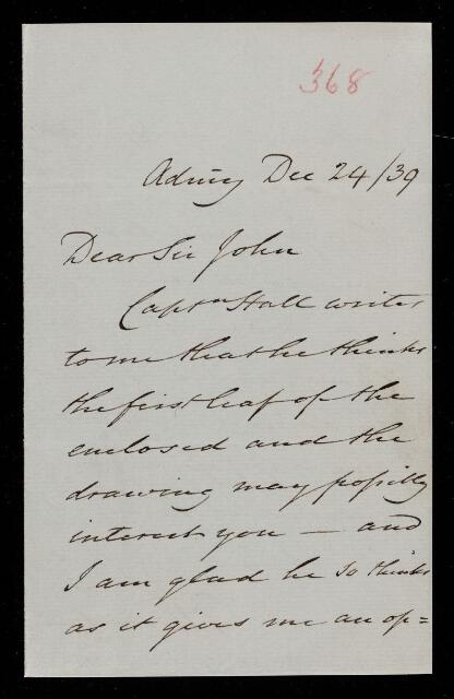 Francis Beaufort, Sir Francis Beaufort, Letter, from Francis Beaufort to Sir John Herschel, dated at Admiralty, 24 December 1839, HS/3/368, The Royal Society Archives, London, https://makingscience.royalsociety.org/items/hs_3_368/letter-from-francis-beaufort-to-sir-john-herschel-dated-at-admiralty, accessed on 10 November 2025