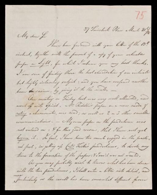 Letter, from Francis Baily to Sir John Herschel, dated at 37 Tavistock Place