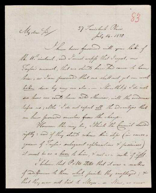 Letter, from Francis Baily to Sir John Herschel, dated at 37 Tavistock Place