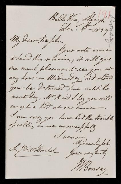 William Bonsey, Letter, from W. Bonsey to Sir John Herschel, dated at Slough, 5 December 1859, HS/4/191, The Royal Society Archives, London, https://makingscience.royalsociety.org/items/hs_4_191/letter-from-w-bonsey-to-sir-john-herschel-dated-at-slough, accessed on 10 November 2025