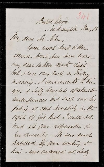 Letter, from Joseph Bullar to Sir John Herschel, dated at Basset Wood near Southampton