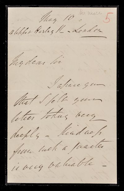 Letter, from J. H. Baillie to Sir John Herschel, dated at Upper Harley St.