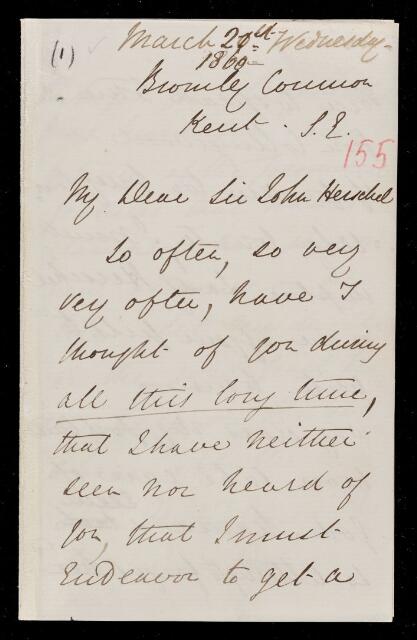 Julia Margaret Cameron, Letter, from Julia Margaret Cameron to Sir John Herschel, dated at Bromley Common, 21 March 1860, HS/5/155, The Royal Society Archives, London, https://makingscience.royalsociety.org/items/hs_5_155/letter-from-julia-margaret-cameron-to-sir-john-herschel-dated-at-bromley-common, accessed on 07 March 2026