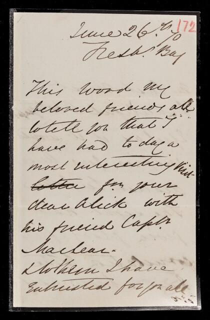 Julia Margaret Cameron, Letter, from Julia Margaret Cameron to Sir John Herschel, dated at Freshwater, I.o.W., 26 June 1870, HS/5/172, The Royal Society Archives, London, https://makingscience.royalsociety.org/items/hs_5_172/letter-from-julia-margaret-cameron-to-sir-john-herschel-dated-at-freshwater-iow, accessed on 07 March 2026