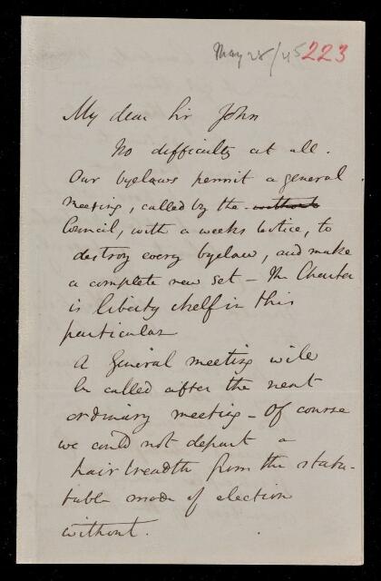 Autograph letter signed by sender. Regarding the by-laws of the Society. Does not know anything about the Cambridge Transactions. Recommends various mathematical papers.