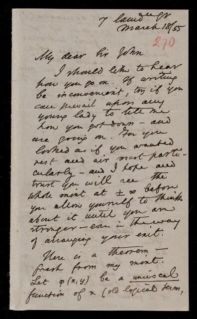 Augustus de Morgan, Letter, from Augustus De Morgan to Sir John Herschel, dated at 7 Camden St., 18 March 1855, HS/6/270, The Royal Society Archives, London, https://makingscience.royalsociety.org/items/hs_6_270/letter-from-augustus-de-morgan-to-sir-john-herschel-dated-at-7-camden-st, accessed on 13 January 2026