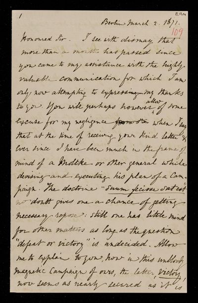 Georg Adolf Erman, Translation of letter, from Georg Adolph Erman to Sir John Herschel, dated at Berlin, 2 March 1871, HS/7/109, The Royal Society Archives, London, https://makingscience.royalsociety.org/items/hs_7_109/translation-of-letter-from-georg-adolph-erman-to-sir-john-herschel-dated-at-berlin, accessed on 09 November 2025