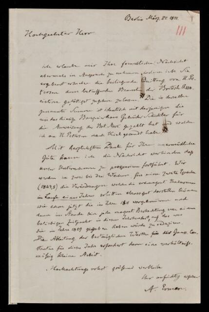 Letter, from Georg Adolph Erman to Sir John Herschel, dated at Berlin