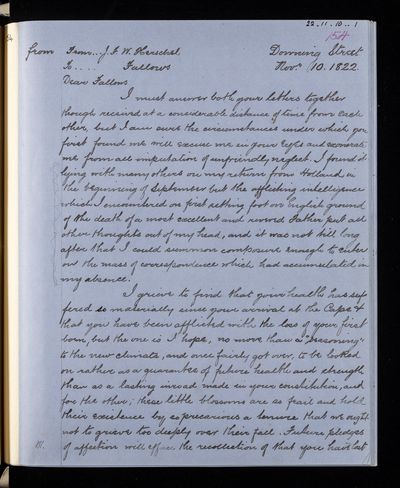 John Frederick William Herschel, Draft letter, from Sir John Herschel to Fearon Fallows, dated at Downing St., 10 November 1822, HS/7/160, The Royal Society Archives, London, https://makingscience.royalsociety.org/items/hs_7_160/draft-letter-from-sir-john-herschel-to-fearon-fallows-dated-at-downing-st, accessed on 09 February 2026