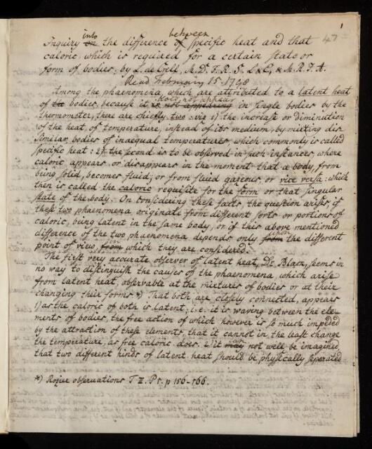 Lorenz Florenz Friedrich von Crell, Paper, 'Inquiry into the difference between specific heat and that caloric whic is required for a certain state or form of bodies' by Lorenz Florenz Friedrich von Crell, 1798, L&P/11/47, The Royal Society Archives, London, https://makingscience.royalsociety.org/items/l-and-p_11_47/paper-inquiry-into-the-difference-between-specific-heat-and-that-caloric-whic-is-required-for-a-certain-state-or-form-of-bodies-by-lorenz-florenz-friedrich-von-crell, accessed on 15 February 2026
