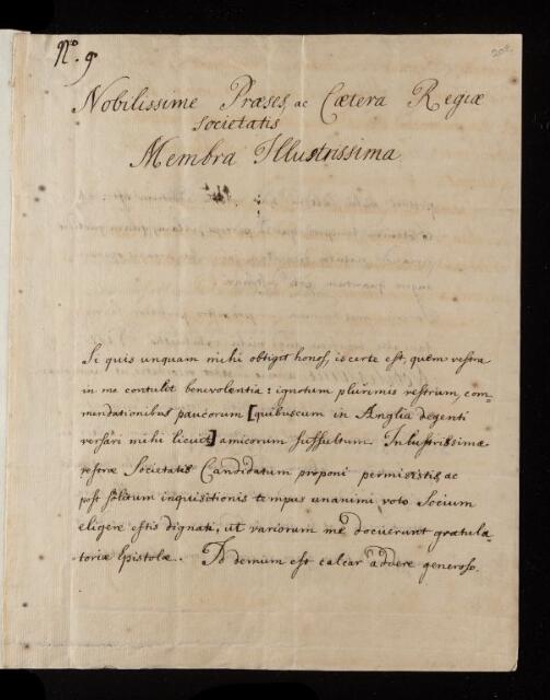 Letter, 'Concerning his election as a Fellow of the Royal Society' from Wilhelmus Wilhelmius to the President of the Royal Society