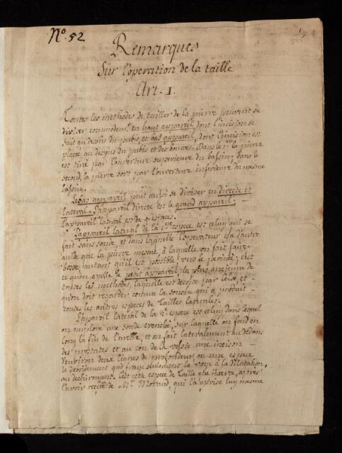 Paper, 'Remarques sur l'operation de la taille' [Remarks on the operation of cutting for the stone] by Claude Nicholas Le Cat