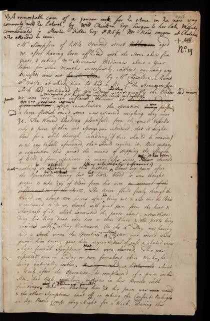 William Cheselden, Paper, 'Of a case of lateral cutting for the stone' by William Cheselden, 1745, L&P/1/445, The Royal Society Archives, London, https://makingscience.royalsociety.org/items/l-and-p_1_445/paper-of-a-case-of-lateral-cutting-for-the-stone-by-william-cheselden, accessed on 10 December 2025