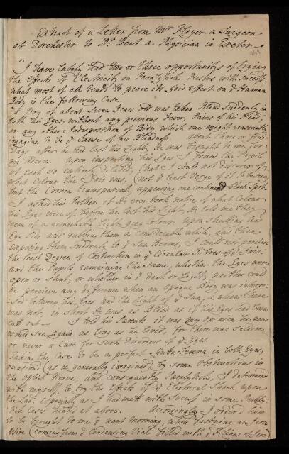 Letter, 'On the treatment of paralytics with electricity' from Anthony Floyer and Thomas Meech to Dr Bent, 23 May 1751, L&P/2/249, The Royal Society Archives, London, https://makingscience.royalsociety.org/items/l-and-p_2_249/letter-on-the-treatment-of-paralytics-with-electricity-from-anthony-floyer-and-thomas-meech-to-dr-bent, accessed on 09 February 2026