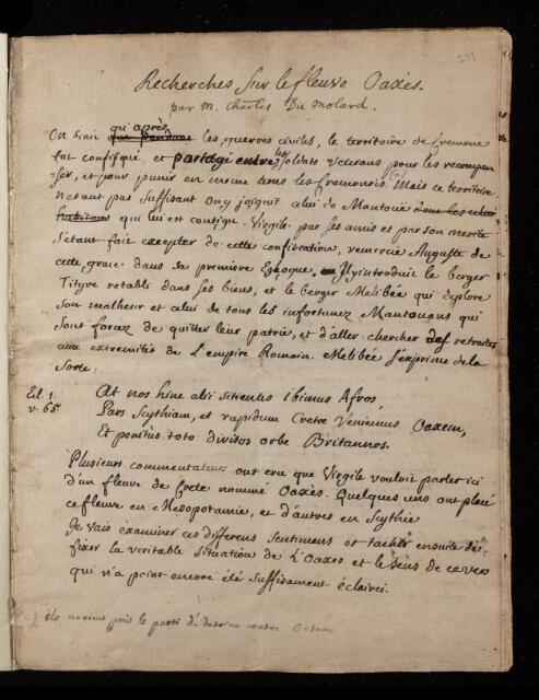 Paper, 'Researches sur le fleve Oaxes [Researches on the River Oaxes]' by Charles le Molard