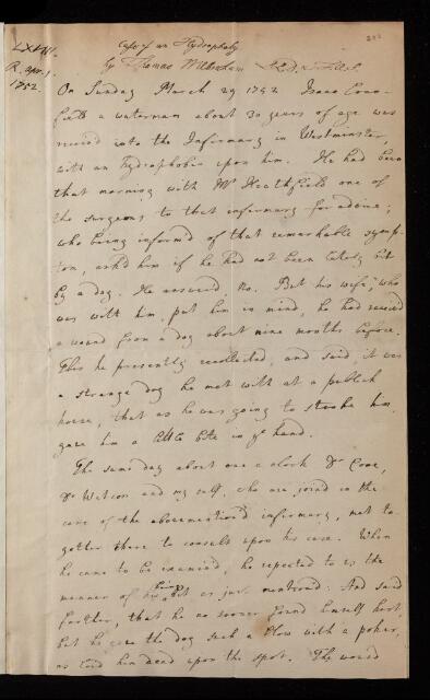 Paper, 'Case of hydrophoby' by Thomas Wilbraham