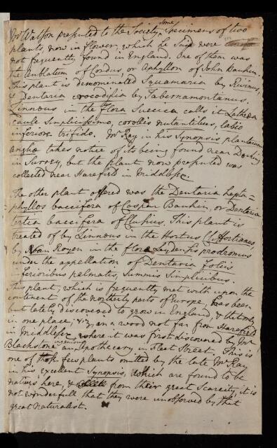 William Watson, Paper, 'Of amphyllon and Denataria heptaphylla' by William Watson, 1752, L&P/2/284, The Royal Society Archives, London, https://makingscience.royalsociety.org/items/l-and-p_2_284/paper-of-amphyllon-and-denataria-heptaphylla-by-william-watson, accessed on 13 November 2025