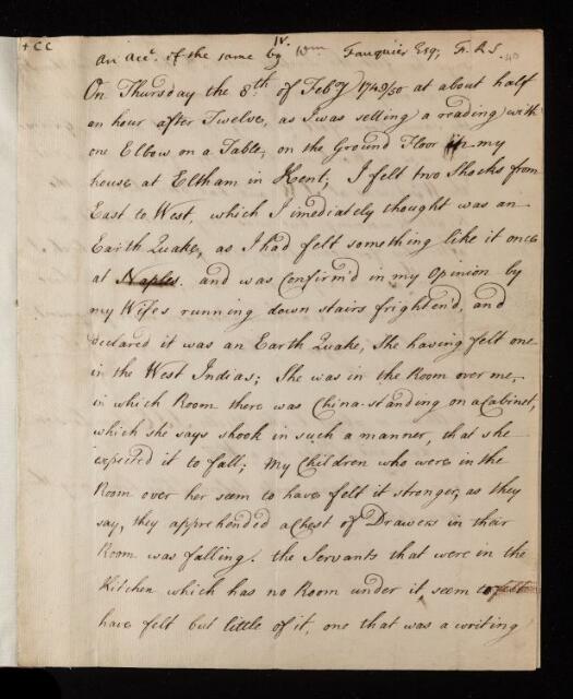 IV. An account of the shock of an earthquake, felt Feb. 8. 1749-50 External link, opens in new tab.