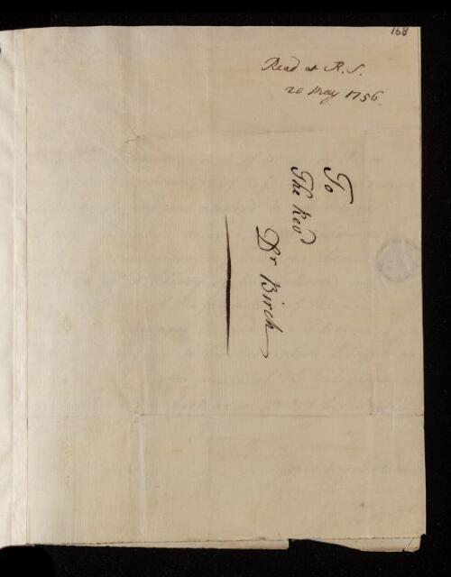 James Short, Letter, 'An account of Dr Wark's paper on improving refracting telescopes, which had been referred him' from James Short to Thomas Birch, 20 May 1756, L&P/3/168, The Royal Society Archives, London, https://makingscience.royalsociety.org/items/l-and-p_3_168/letter-an-account-of-dr-warks-paper-on-improving-refracting-telescopes-which-had-been-referred-him-from-james-short-to-thomas-birch, accessed on 08 February 2026