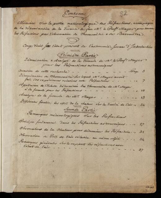 Paper, 'Memoire sur la partie meteologique des refractions [Memoir on the meteorological part of the refractions]' by Jean Andre De Luc