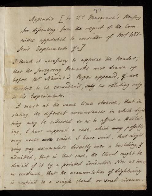Samuel Musgrave, Appendix, 'Reasons for dissenting from the report of the committee appointed to consider Mr Wilson's paper' by Samuel Musgrave, 1779, L&P/7/97, The Royal Society Archives, London, https://makingscience.royalsociety.org/items/l-and-p_7_97/appendix-reasons-for-dissenting-from-the-report-of-the-committee-appointed-to-consider-mr-wilsons-paper-by-samuel-musgrave, accessed on 10 February 2026