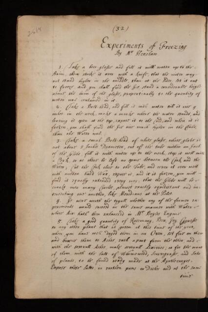 Experiments of Freezing. By Mr Henshaw, 03 December 1662, MS/215/4, The Royal Society Archives, London, https://makingscience.royalsociety.org/items/ms_215_4/experiments-of-freezing-by-mr-henshaw, accessed on 06 December 2025