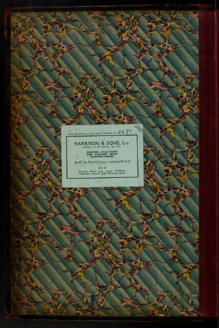 A sheet pasted on inside cover tallies all entries from the previous volume (MS/421/8); another sheet on the first fly leaf tallies all papers received from January 1939 to December 1951 inclusive.