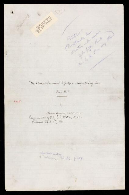 Thomas Andrews, Paper, 'The electro-chemical effect on magnetising iron. Part II' by Thomas Andrews, 1888, PP/12/8, The Royal Society Archives, London, https://makingscience.royalsociety.org/items/pp_12_8/paper-the-electro-chemical-effect-on-magnetising-iron-part-ii-by-thomas-andrews, accessed on 17 March 2026