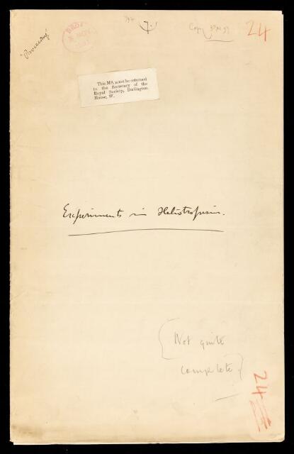 George John Romanes, Paper, 'Experiments in heliotropism' by George John Romanes, 1893, PP/22/23, The Royal Society Archives, London, https://makingscience.royalsociety.org/items/pp_22_23/paper-experiments-in-heliotropism-by-george-john-romanes, accessed on 10 December 2025