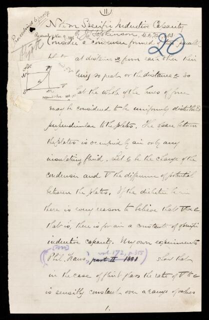 John Hopkinson, Paper, 'Note on specific inductive capacity' by John Hopkinson, 1886, PP/9/16, The Royal Society Archives, London, https://makingscience.royalsociety.org/items/pp_9_16/paper-note-on-specific-inductive-capacity-by-john-hopkinson, accessed on 14 November 2025