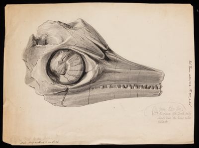 Painting, fossilised skull of the proteo-saurus [ichthyosaur] by [William Clift]