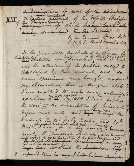 Everard Home, Paper, 'An account of the fossil skeleton of the proteo-saurus' by Sir Everard Home, 1819, PT/13/15, The Royal Society Archives, London, https://makingscience.royalsociety.org/items/pt_13_15/paper-an-account-of-the-fossil-skeleton-of-the-proteo-saurus-by-sir-everard-home, accessed on 20 January 2026