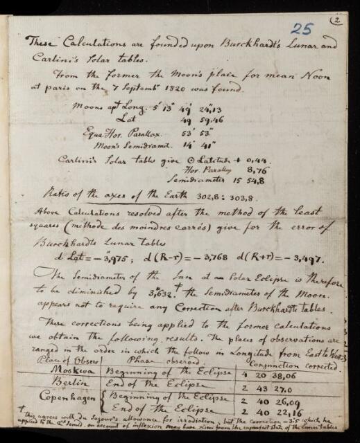 Carl Ludwig Christian Rumker, Paper, 'Calculation of some observations of the solar eclipse on the 7th of Sept [September] 1820' by Charles Rumker, 1821, PT/15/25, The Royal Society Archives, London, https://makingscience.royalsociety.org/items/pt_15_25/paper-calculation-of-some-observations-of-the-solar-eclipse-on-the-7th-of-sept-september-1820-by-charles-rumker, accessed on 13 February 2026
