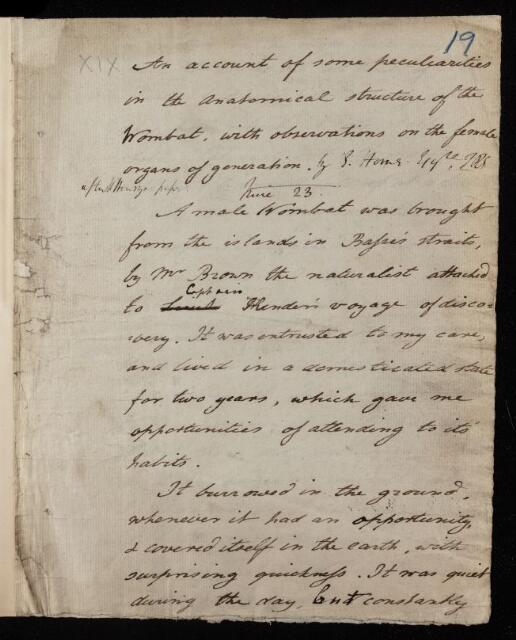 Everard Home, Paper, 'An account of some peculiarities in the anatomical structure of the wombat, with observations on the female organs of generation' by Everard Home, 1808, PT/2/19, The Royal Society Archives, London, https://makingscience.royalsociety.org/items/pt_2_19/paper-an-account-of-some-peculiarities-in-the-anatomical-structure-of-the-wombat-with-observations-on-the-female-organs-of-generation-by-everard-home, accessed on 11 February 2026