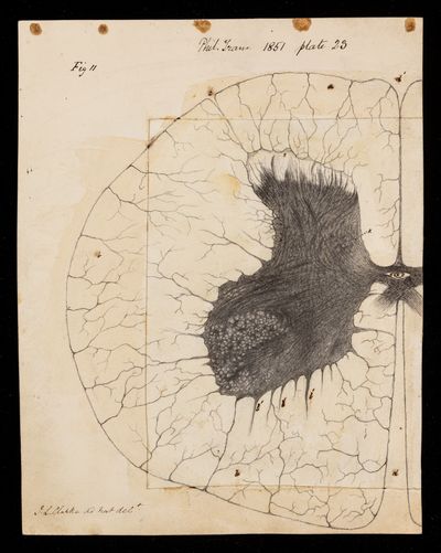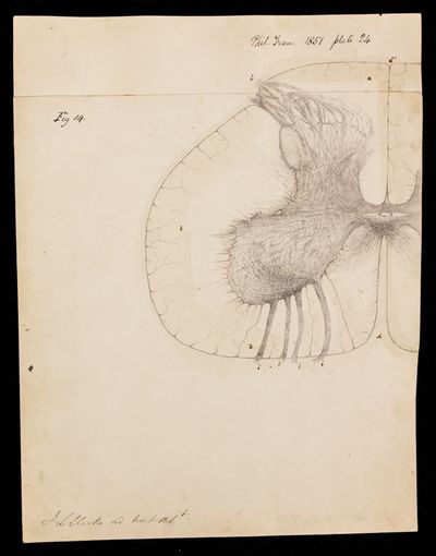 Drawing, grey substance from dorsal region of calf spinal chord by [Jacob Augustus Lockhart Clarke]