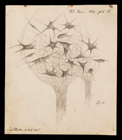 Drawing, grey substance from calf spinal chord by J [Jacob Augustus] L [Lockhart] Clarke