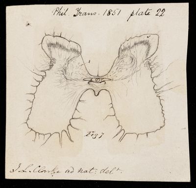 Drawing, caudate vesicles by J [Jacob Augustus] L [Lockhart] Clarke