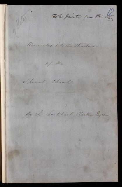 Paper, 'Researches into the structure of the spinal cord' by J [Jacob Augustus] Lockhart Clarke
