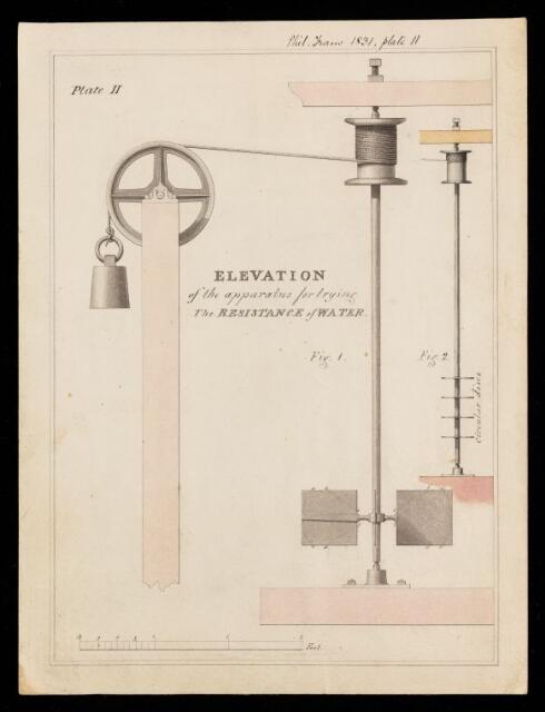 George Rennie, Diagram, 'Elevation of the apparatus for trying the resistance of water' by unknown artist, 1831, PT/73/14/3, The Royal Society Archives, London, https://makingscience.royalsociety.org/items/pt_73_14_3/diagram-elevation-of-the-apparatus-for-trying-the-resistance-of-water-by-unknown-artist, accessed on 07 December 2025