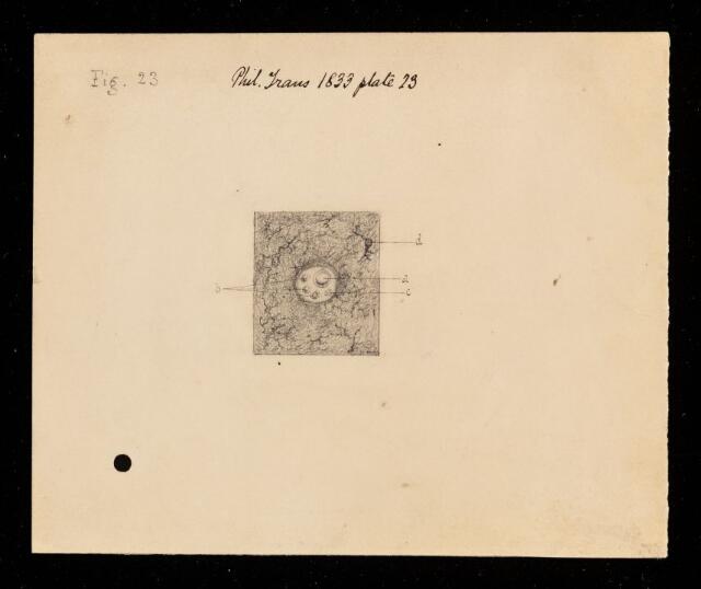 Plate 23, figure 6 (labelled here as figure 23) showing a transverse section of a portal canal in a child's liver. Inscribed with publication and plate details. Not signed. The manuscript for this paper is wanting.
