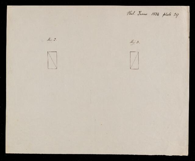 Plate 29, figures 2-3 showing the deflection of the line of electricity in Wheatstone's apparatus if the motion of the electric spark moves downwards or upwards. Inscribed with publication and plate details. Not signed. The manuscript for this paper is wanting.