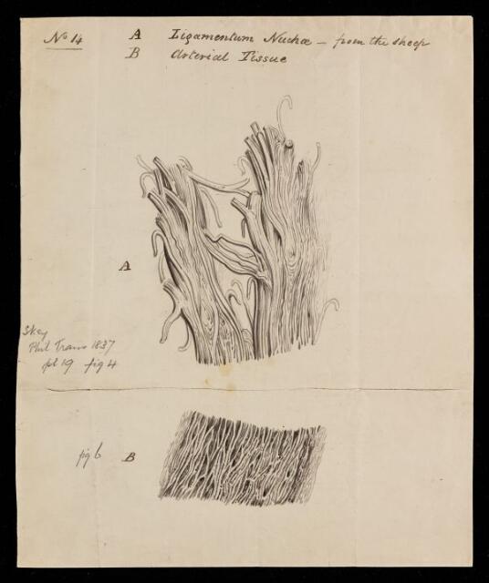 Frederic Carpenter Skey, Drawings, ligamentum nuchae of sheep and artery by [Frederic Carpenter Skey?], 1837, PT/74/4/22, The Royal Society Archives, London, https://makingscience.royalsociety.org/items/pt_74_4_22/drawings-ligamentum-nuchae-of-sheep-and-artery-by-frederic-carpenter-skey, accessed on 06 December 2025