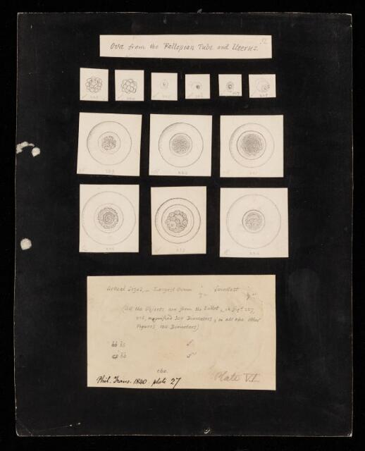 Martin Barry, Drawings, 'Ova from the fallopian tube and uterus' by [Martin Barry], 1840, PT/74/7/15, The Royal Society Archives, London, https://makingscience.royalsociety.org/items/pt_74_7_15/drawings-ova-from-the-fallopian-tube-and-uterus-by-martin-barry, accessed on 10 November 2025