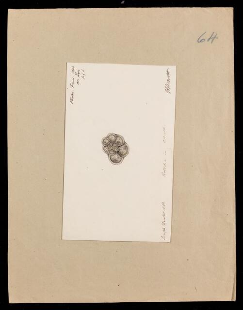 Published in Philosophical Transactions as part of paper titled 'On the fossil remains of the soft parts of Foraminifera, discovered in the chalk and flint of the South-East of England' by Gideon Algernon Mantell.