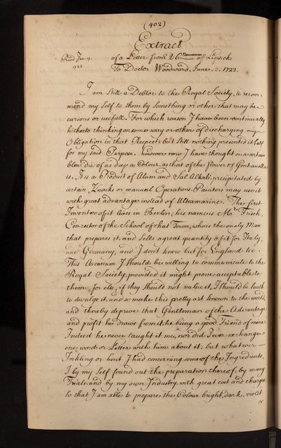 Concerning a new colour preparation sent to John Woodward, 1724, RBO/11/104, The Royal Society Archives, London, https://makingscience.royalsociety.org/items/rbo_11_104/concerning-a-new-colour-preparation-sent-to-john-woodward, accessed on 11 November 2025
